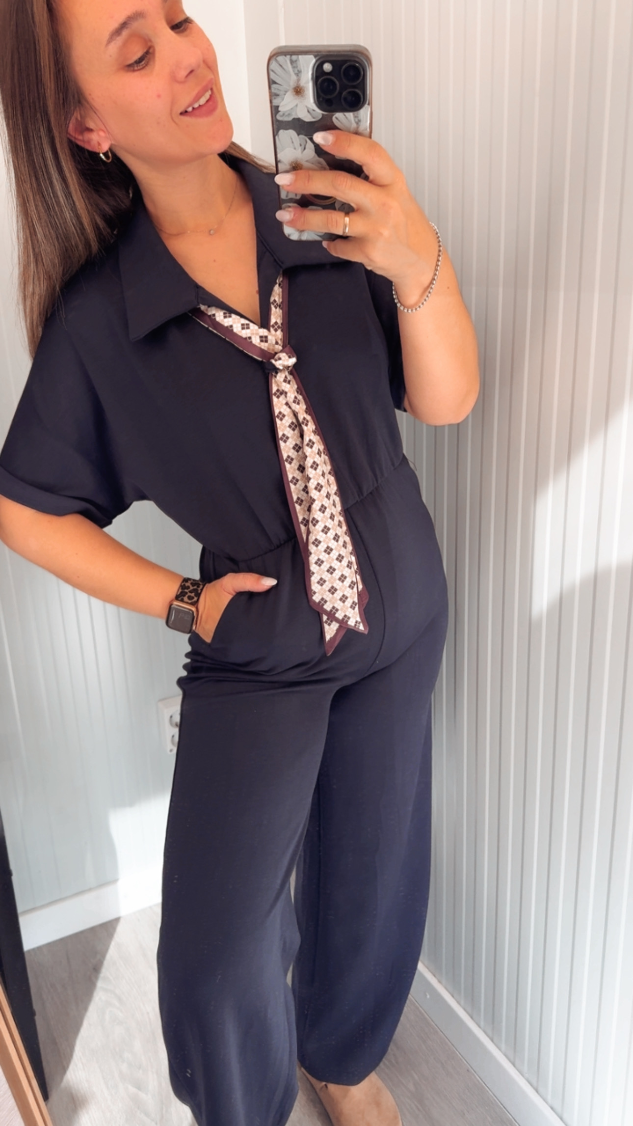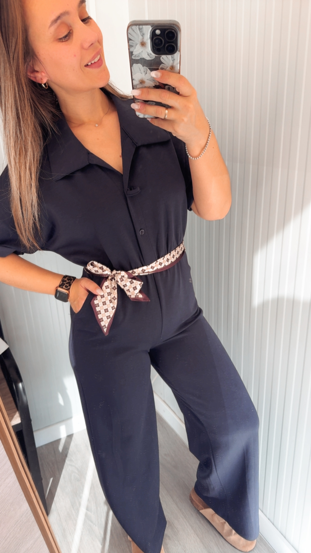 Mono de capa de aire, con gomita en la cintura, detalle de pañuelo, pata ancha/recta. Talla única (36-42)