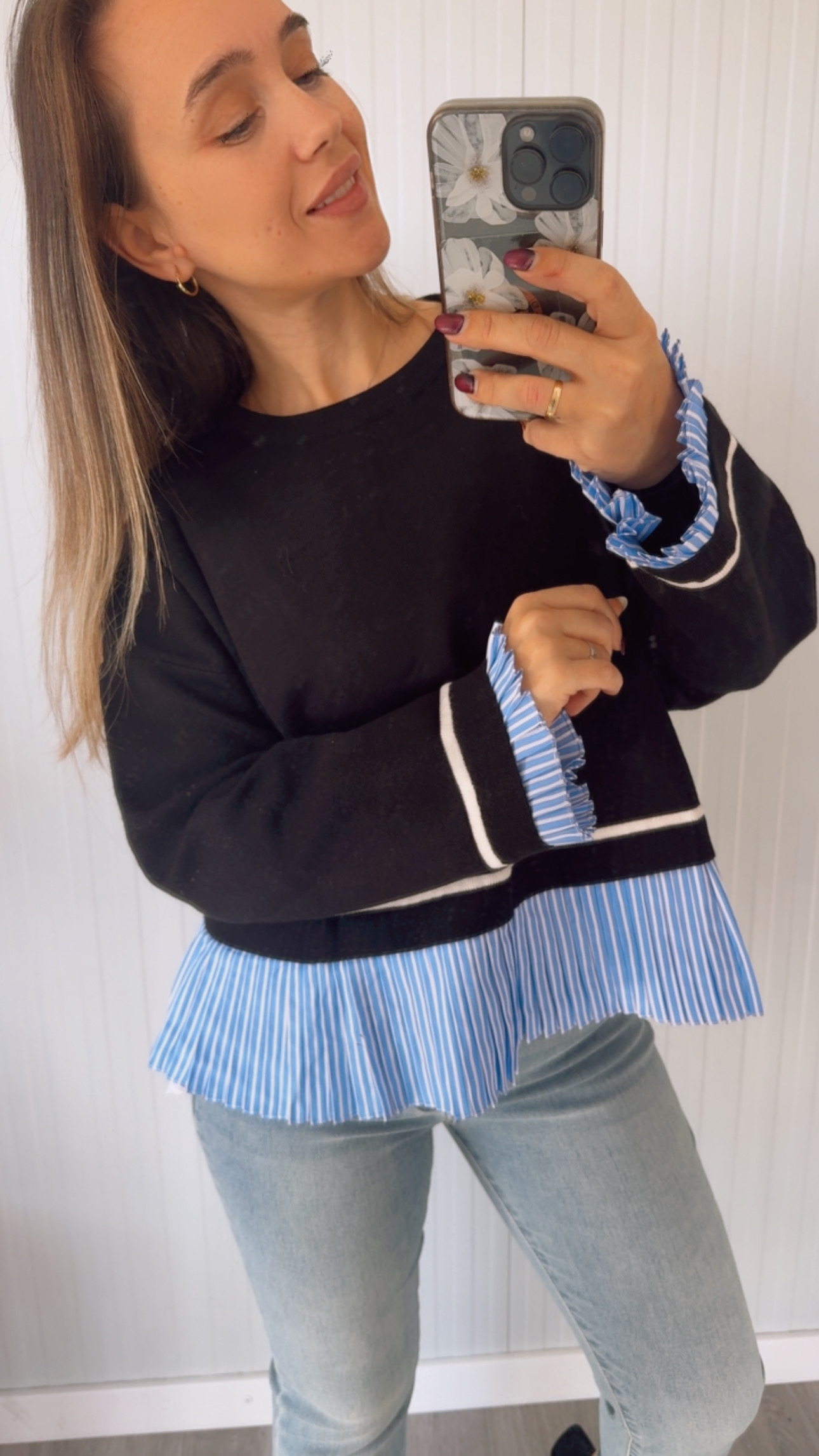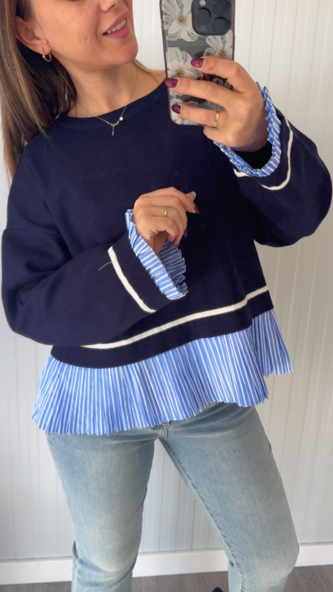Jersey con detalle de faldón y puños en efecto camisa de rayas. Talla única (36-46)